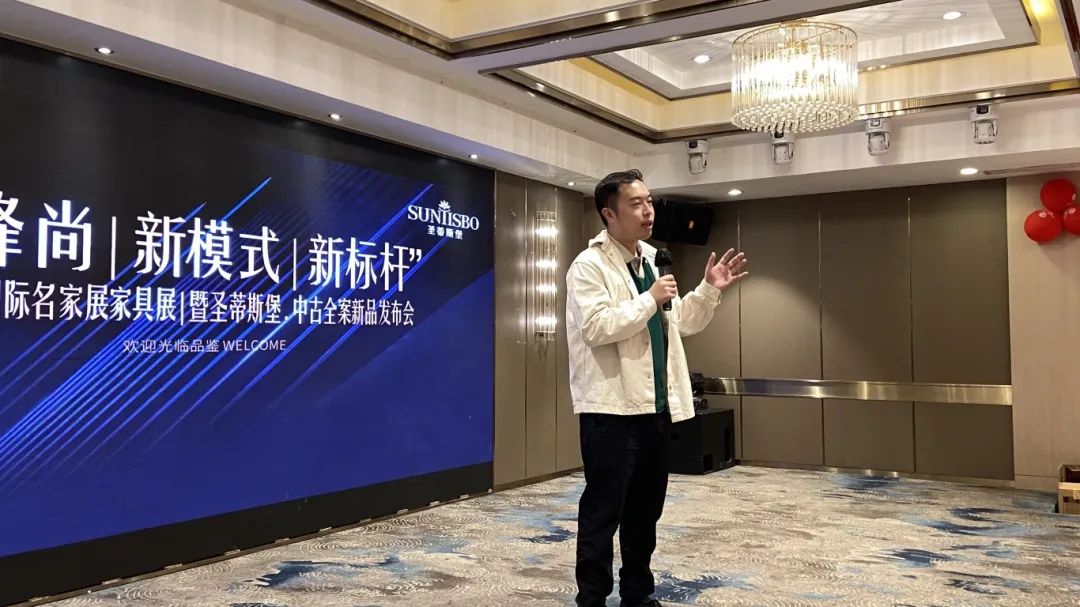 接下来,金年会金字招牌诚信至上工业营销部副经理吴天喜先生为我们重磅揭晓了2025春季新品中古全案系列和新古典全案升级新品,他从选材、设计、风格、工艺等方面进行了全面的讲解,并提到此次中古新品的全案模式是以更具设计感的创新方式,给予消费者整体性的体验感升级,助力大家在激烈的市场竞争中,突显差异化的优势,实现业绩的飞跃式增长。